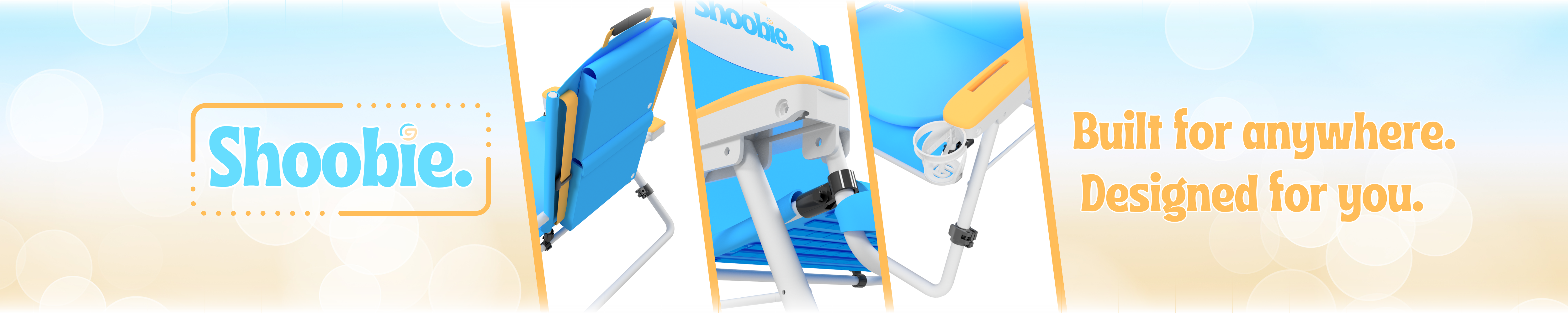 The "Shoobie Seat," a chair with adjustable height; to sit low at the beach and higher up on the sidelines, and so it can be raised for those who can't get down as low as they used to.